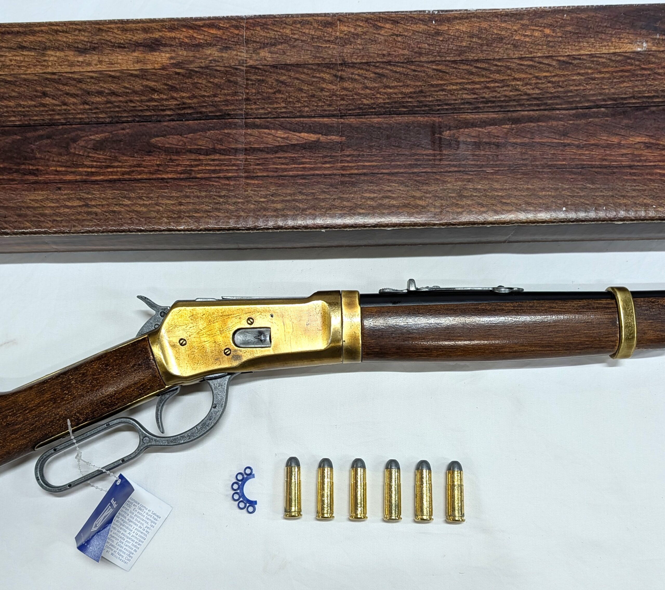 Made of metal and imitation wood polypropylene, it has a weight very similar to a real ’92 Carabine rifle and has a bronze finish.