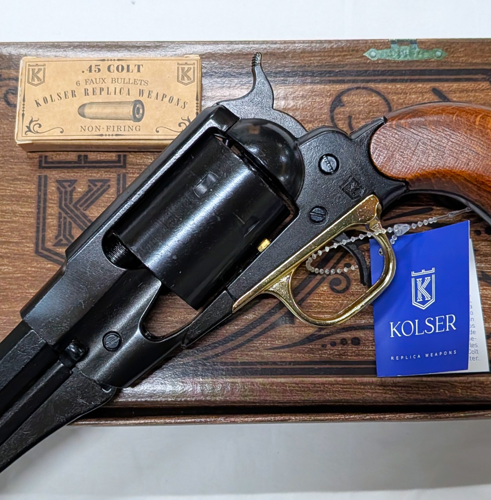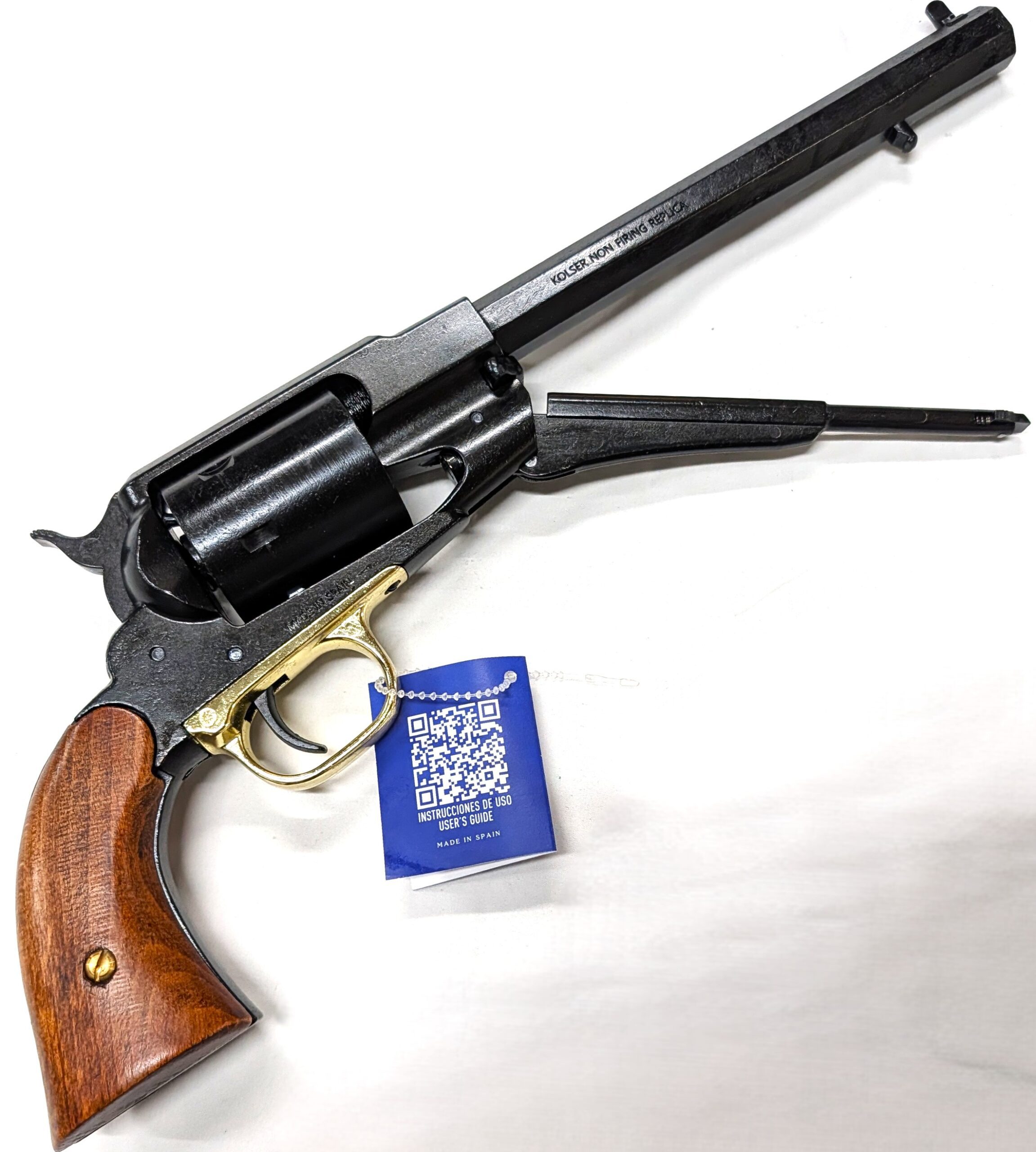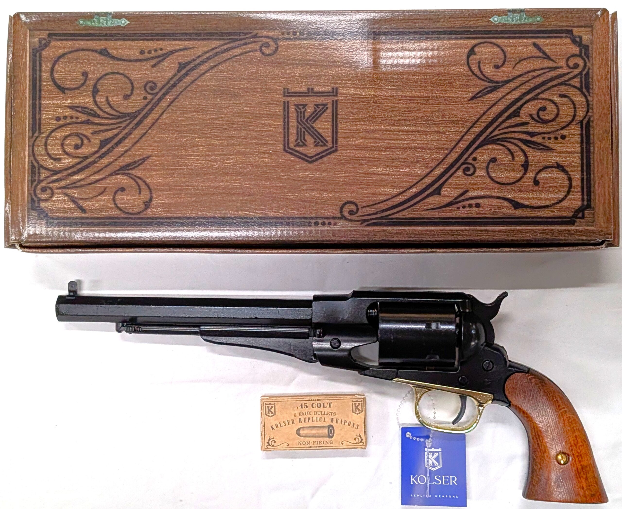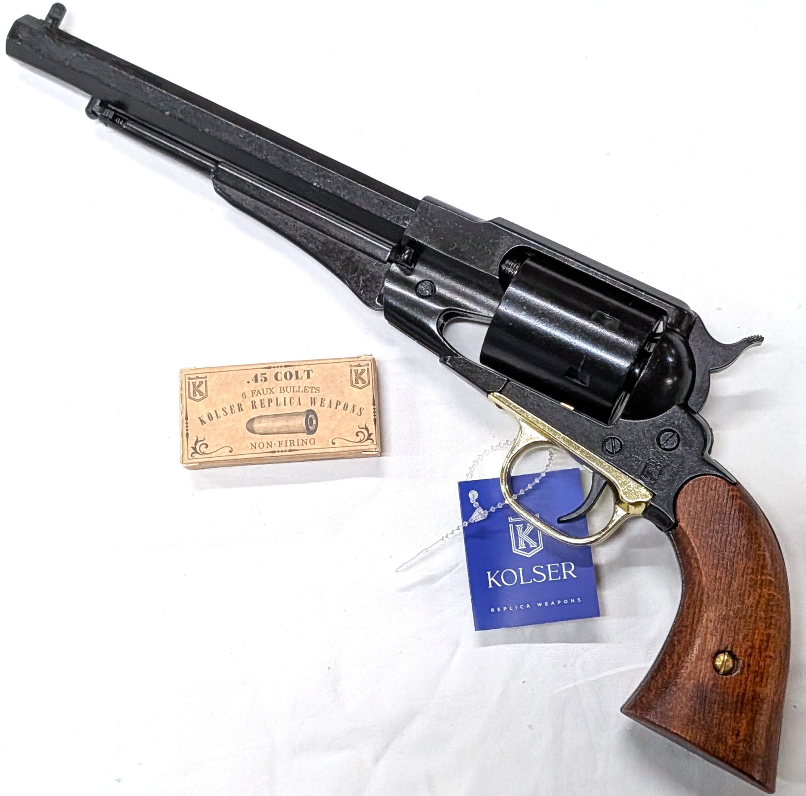 From the battlefield to the Wild West, Kolser’s Remington 1858 Converted replica represents the evolution of the classic black powder revolver, reengineered for metallic cartridges. A historical piece that captures the technological shift of the late 19th century.