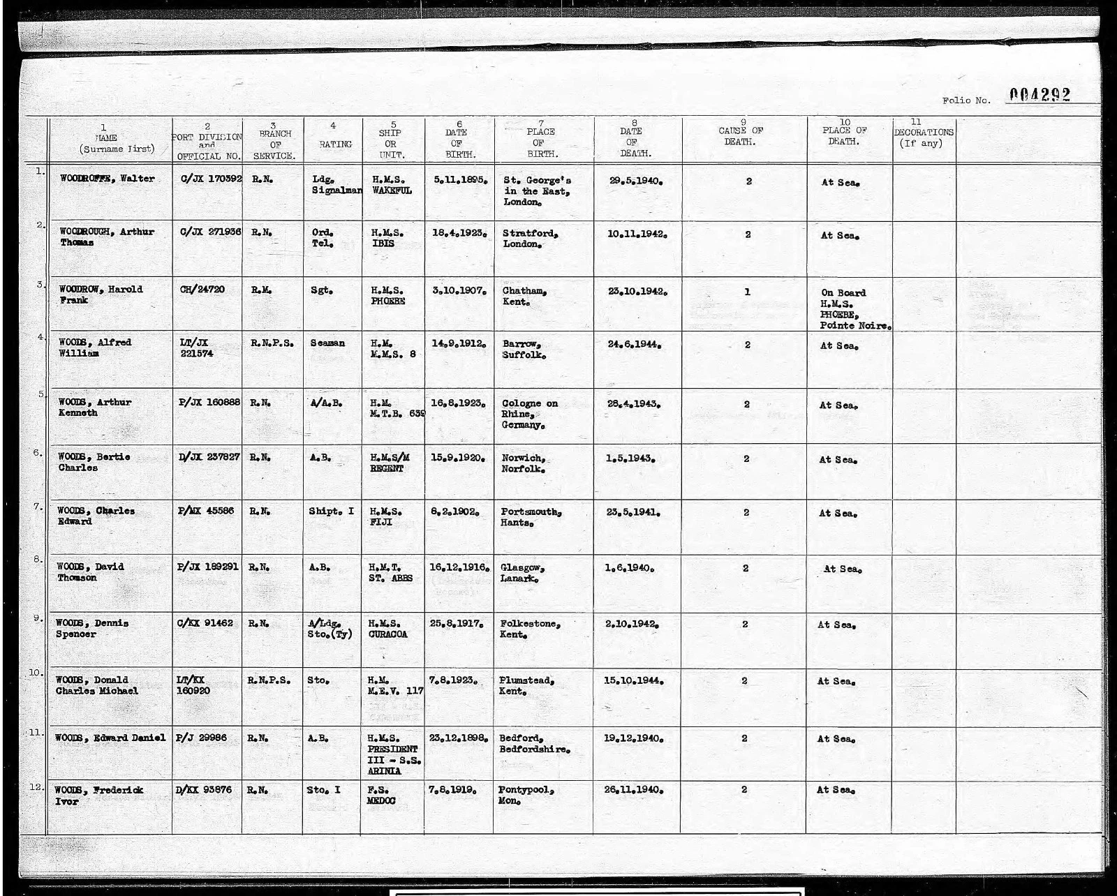 Woodroffe, who was among those casualties, is commemorated on the Chatham Naval Memorial.