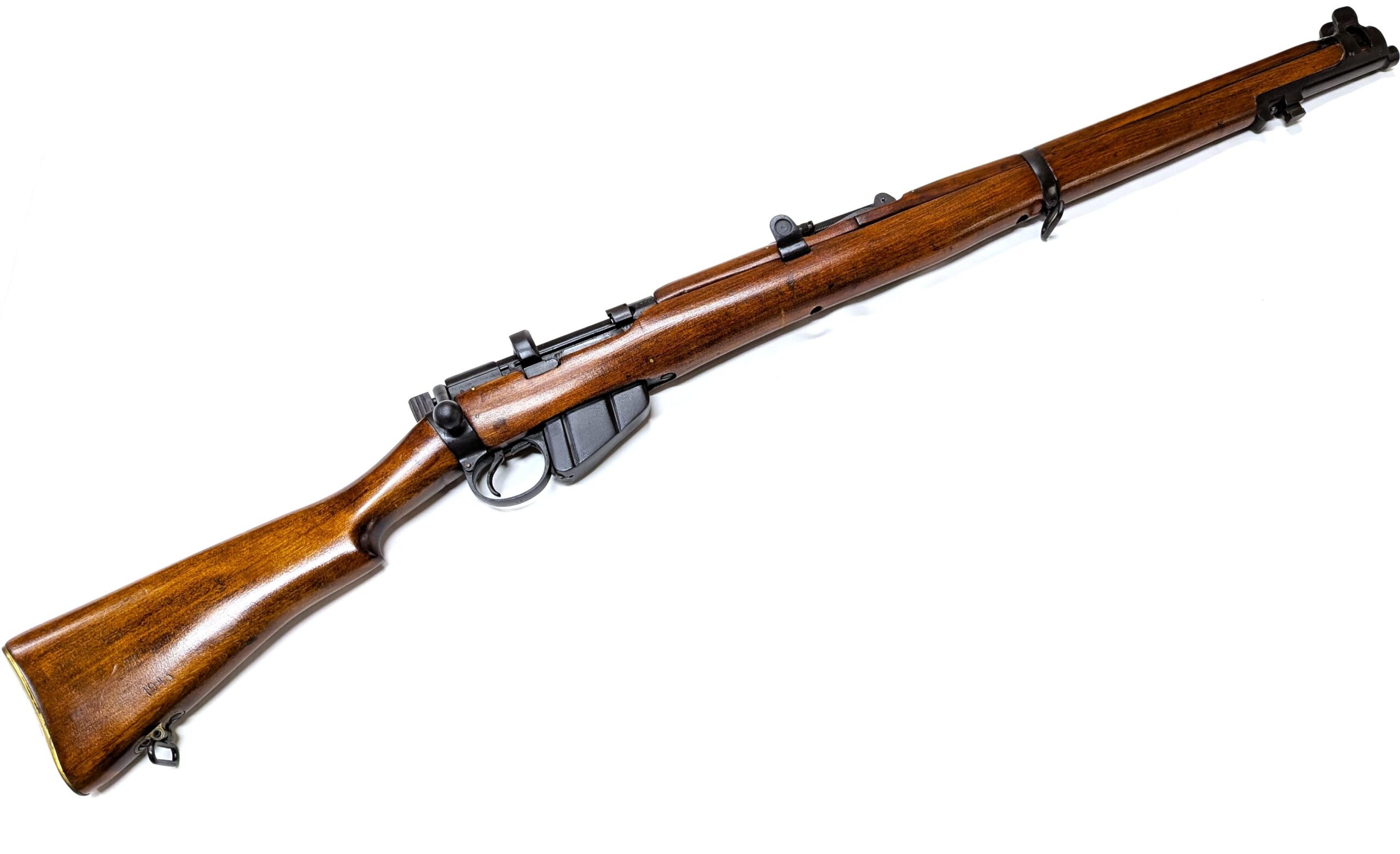 WW2 Australian 1942 dated, inert/deactivated Lee Enfield No.1, Mk.3 rifle by Lithgow Small Arms. An excellent example of this iconic service rifle, which has been deactivated for display. Marked ‘MA S.M.L.E. III 1942' to sleeve. The bolt is fixed, working trigger and removeable magazine. Serial numbers to various parts are matching. Overall, an excellent display piece. Note: No licence required in W.A. JB Military Antiques can ship this lot within Australia, Bidders from outside of Australia must arrange for collection and shipping of this lot.